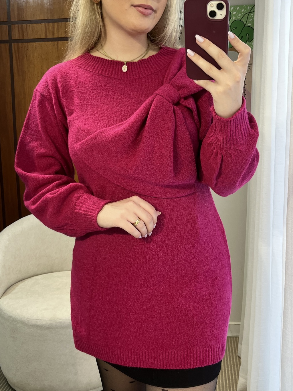 Esse blusão de laço em tricô mousse vem na cor pink vibrante, perfeita para dar um toque de alegria aos dias mais frios. O destaque fica por conta do laço na parte da frente, que traz um ar romântico e feminino à produção. Feita com aquele tricô mousse macio e fofinho que a gente ama, ela tem um caimento leve e aconchegante, ideal para usar com jeans, saias ou por cima de vestidos. Uma opção estilosa e delicada para se manter quentinha com muito estilo!